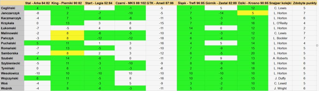 Przewaga lidera Piotra Janczarczyka z tygodnia na tydzień jedynie rośnie – lider naszej zabawy ma już 13 punktów więcej od Krzysztofa Kaczmarczyka (WP Sportowe Fakty) oraz Wojciecha Malinowskiego.