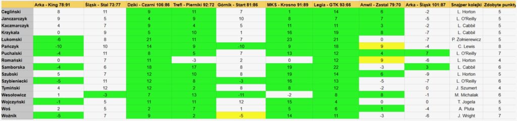 Małe przetasowanie w górnej części tabeli – Szymon Woźnik (SuperBasket) przegonił Łukasza Ceglińskiego (sport.pl) i Krzysztofa Kaczmarczyka (WP Sportowe Fakty) wskakując na trzecie miejsce ze stratą 8 punktów do wciąż pewnie liderującego Piotra Janczarczyka (Strefa Chanasa).