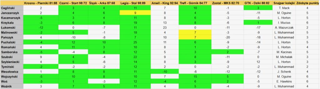 Poprzednia runda spotkań przyniosła kilka niespodzianek dla typerów – jedynie dwóch spodziewało się pierwszej wygranej GTK oraz zwycięstwa Kinga we Włocławku, zaledwie trzech wygranej Zastalu z MKS.