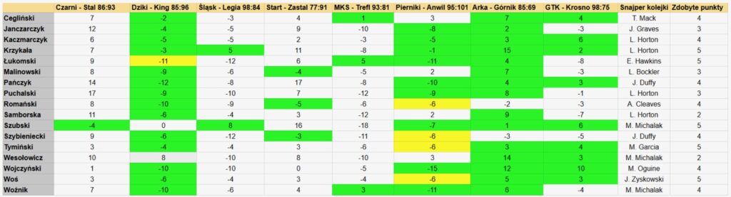 Wydarzenia poprzedniej kolejki mocno zaskoczyły uczestników zabawy #SuperEkspertPLK. Jedynie Marek Szubski (WLC24.TV) poprawnie obstawił wygraną Stali. Zwycięstwa Śląska z Legią oraz Zastalu w Lublinie spodziewało się tylko trzech dziennikarzy.