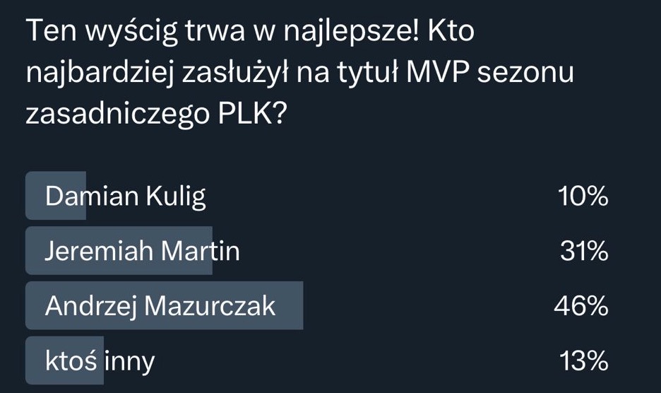 Gdy kilka tygodni temu robiliśmy ankietę wśród dziennikarzy zajmujących się PLK w sprawie tego kto najbardziej zasłużył na tytuł MVP Andrzeja Mazurczaka wyprzedzał nie tylko Jeremiah Martin, ale także Courtney Fortson i Damian Kulig. Ostatnie tygodnie były jednak dla pochodzącego z Chicago polskiego rozgrywającego wyjątkowo udane. Do tego stopnia, że zdaniem naszych czytelników w wyścigu po tytuł najwartościowszego zawodnika ligi nie tylko wyprzedził wyżej wymienionych rywali, ale zostawił ich dość wyraźnie z tyłu.